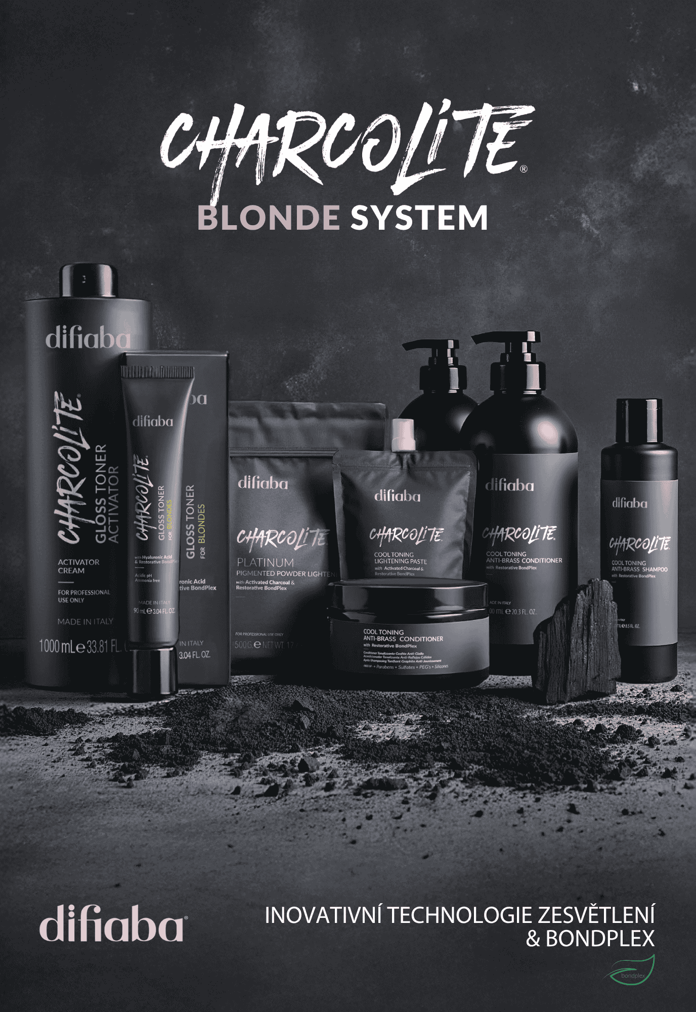 CHARCOLITE - inovativní systém pro docílení cool blond již po prvním použití! Díky výtažku aktivního uhlí , přírodního grafitového prášku a integrovaného Bondplexu ze vzácných přírodních rostlinných olejů dosahuje maximálního efektu chladného zesvětlení již po prvním použití. Ucelený komplex Charcolite zahrnuje přípravky pro zesvětlení - pudr, pasta, pečující a tonizující produkty salonní i domácí péče a v neposlední řadě produkty pro docílení personalizovaného barevného výsledků - Charcolite Toners - krémové tonery s integrovaným Bondplexem a hydratující kyselinou hyaluronovou.