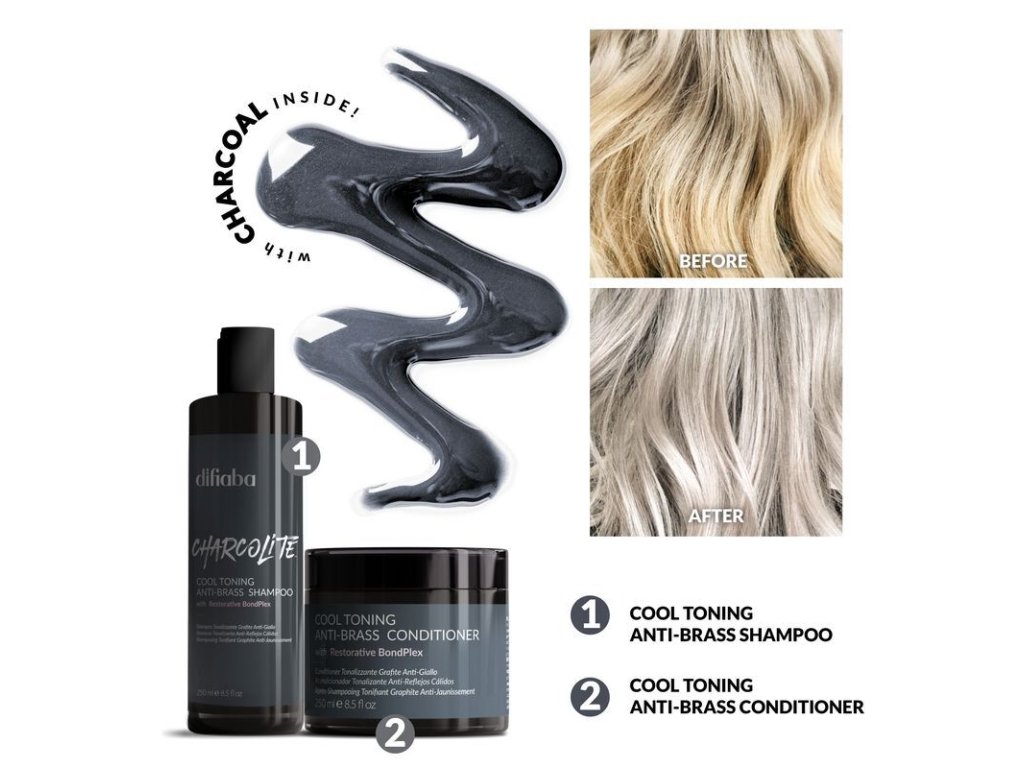 CHARCOLITE - inovativní systém pro docílení cool blond již po prvním použití! Díky výtažku aktivního uhlí , přírodního grafitového prášku a integrovaného Bondplexu ze vzácných přírodních rostlinných olejů dosahuje maximálního efektu chladného zesvětlení již po prvním použití. Ucelený komplex Charcolite zahrnuje přípravky pro zesvětlení - pudr, pasta, pečující a tonizující produkty salonní i domácí péče a v neposlední řadě produkty pro docílení personalizovaného barevného výsledků - Charcolite Toners - krémové tonery s integrovaným Bondplexem a hydratující kyselinou hyaluronovou.