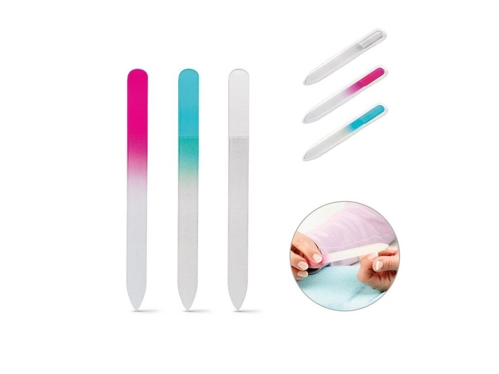 Skleněný pilník 14cm mix barev - oboustranný, vhodný pro manikúru i pedikúru
