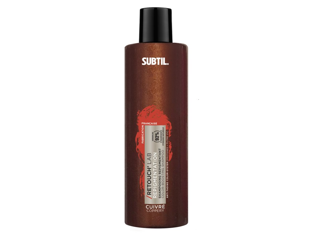 RETOUCH LAB od francouzské značky SUBTIL jsou repigmentační (doplňující barevný pigment) šampony a masky, se kterými váš účes nikdy nebude barevně fádní. Díky vysokému podílu přírodních barevných pigmentů a proteinu šetrně podporují a posilují barevný výsledek vašich vlasů , zejména v době mezi jednotlivými barveními a činí vlasy dokonale zářícími. Dokáží také barevné tónovat melíry ve vlasech nebo korigovat barevný výsledek vlasů zesvětlených