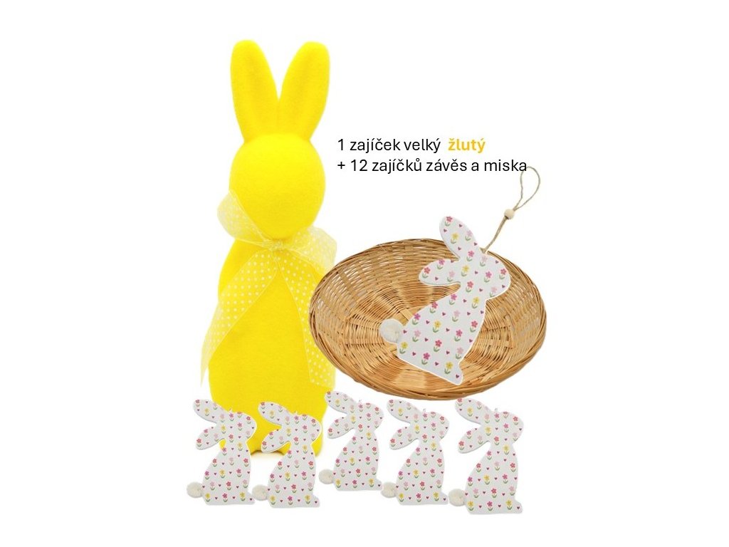 ŽLUTÝ ZAJÍC SADA +12 dřevěný + ošatka